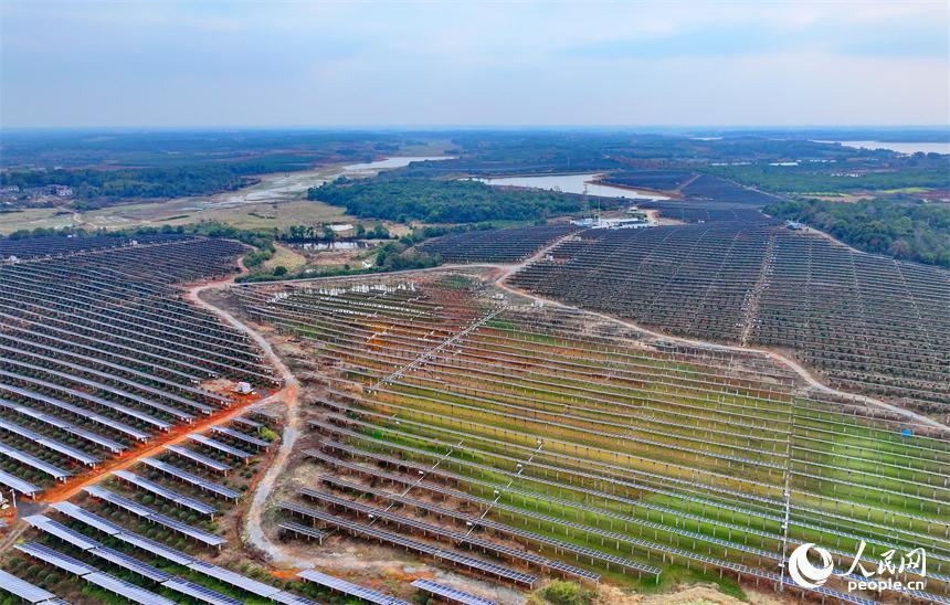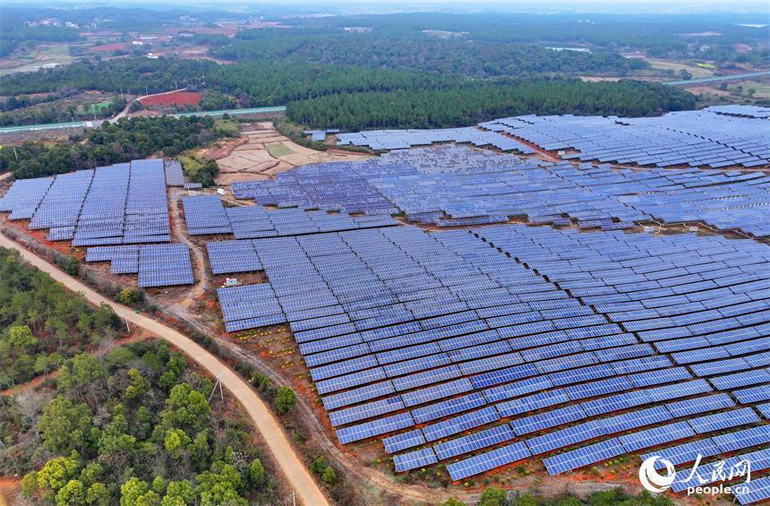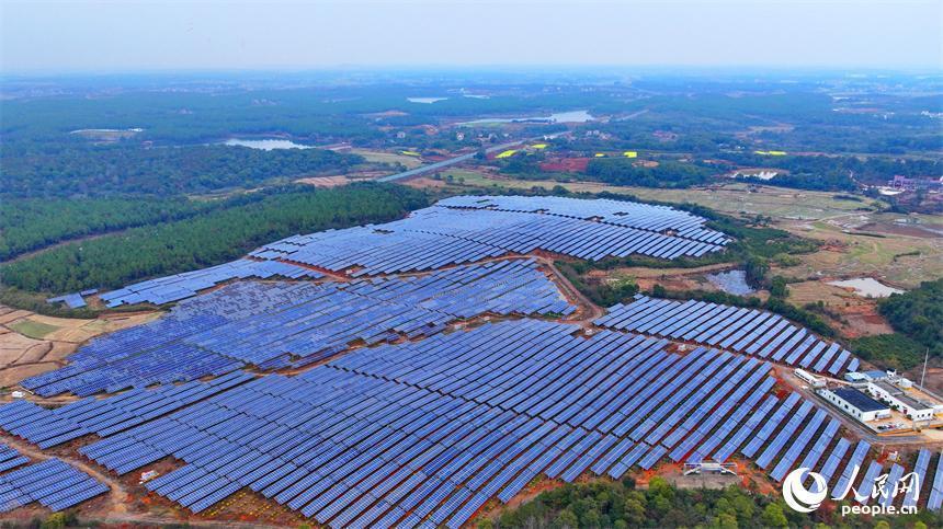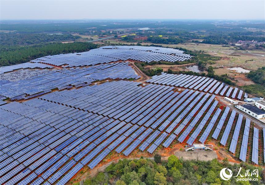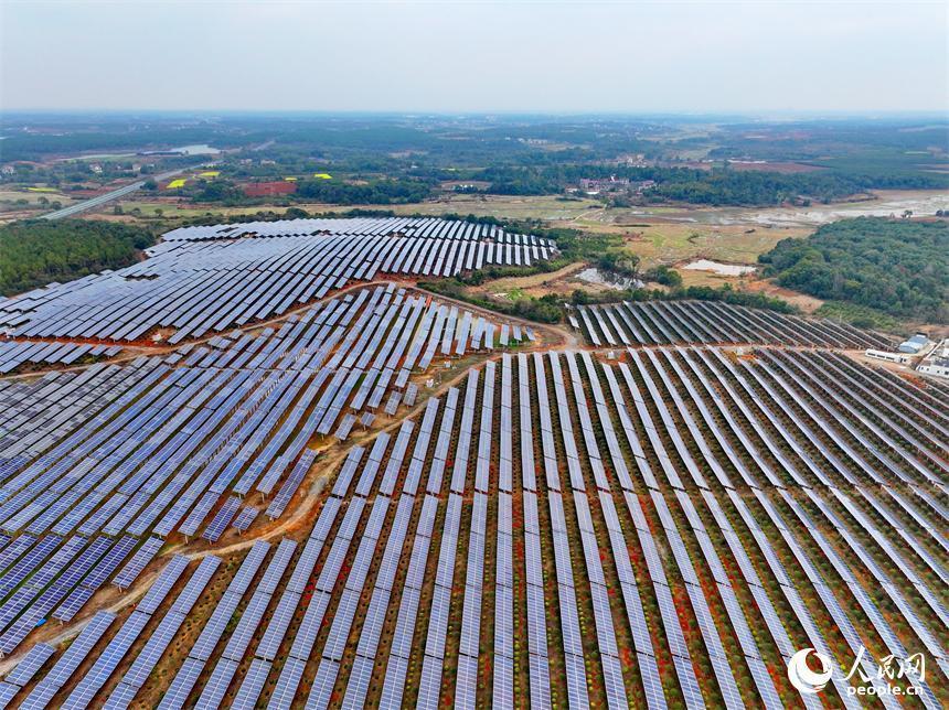 樟树市刘公庙镇横塘村光伏基地,成片的光伏发电板依次排列。人民网 朱海鹏摄